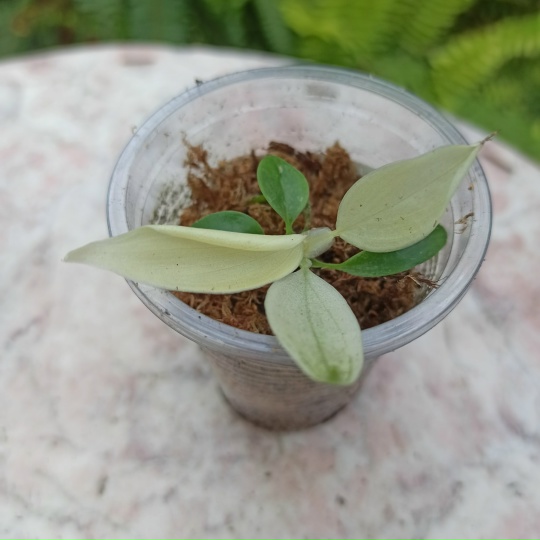 редкий, бело - лимонного цвета, пятнистый и коллекционный филодендрон. Это гибрид от филодендрона Пинатифидум и Гигантум. Молодые листья белого цвета, с возрастом появляются мелкие светло - зеленые и темно - зеленые вкрапления по всей поверхности листовых пластин.