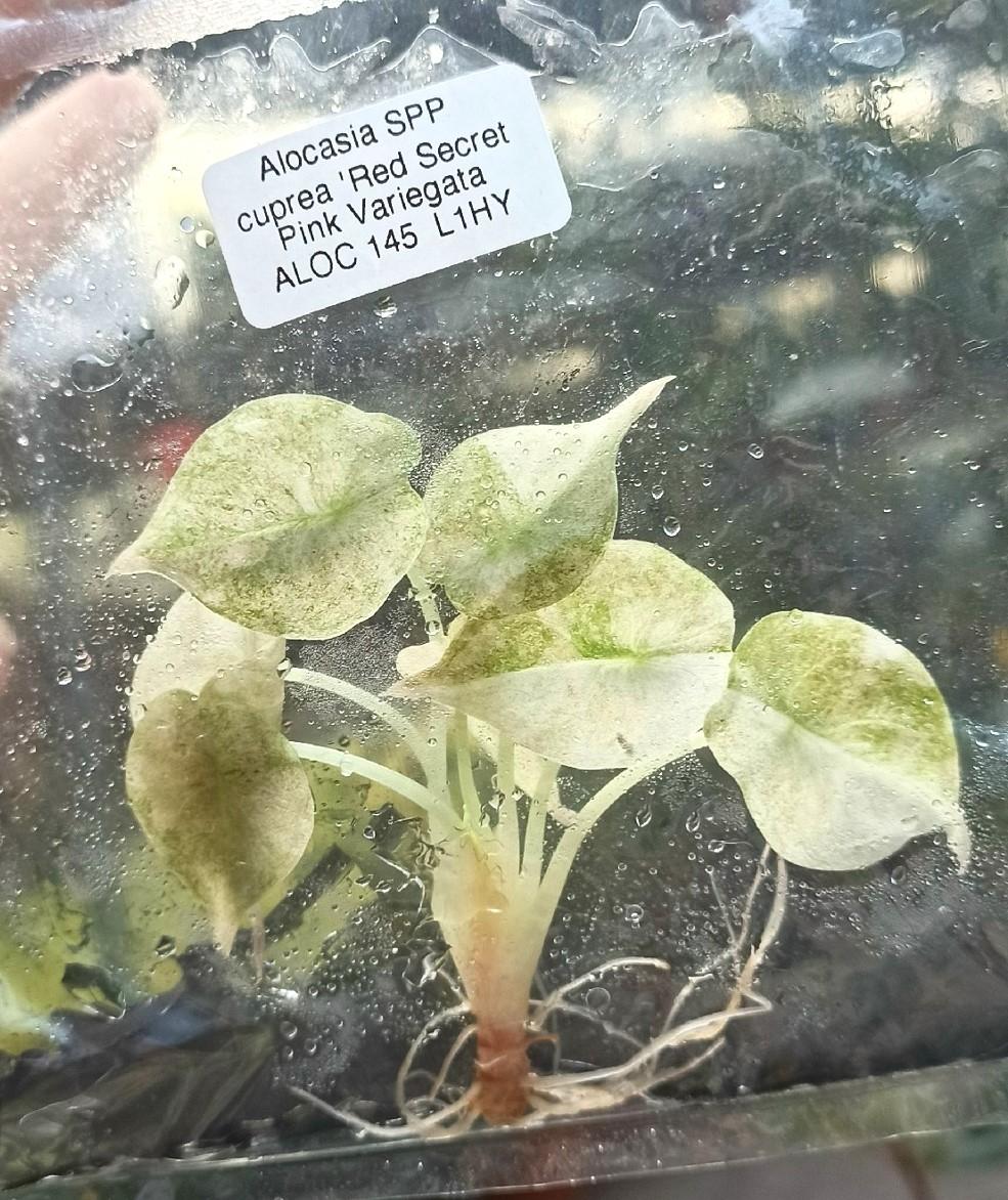 Алоказия купрея Рэд Секрет Пинк вариегата