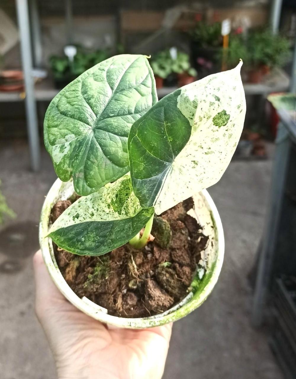 Алоказия Шкура Дракона альбо вариегата минт
