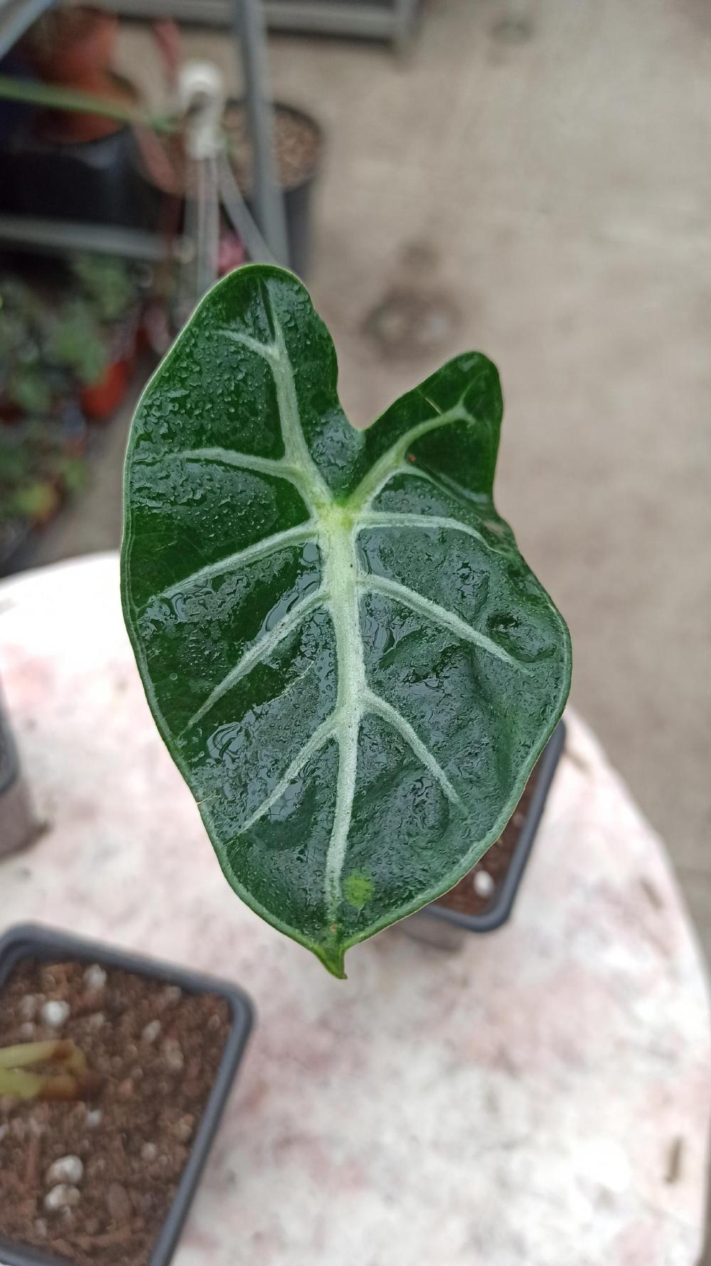 Необычное растение с крупными листьями насыщенного зелёного цвета и мягкой текстурой