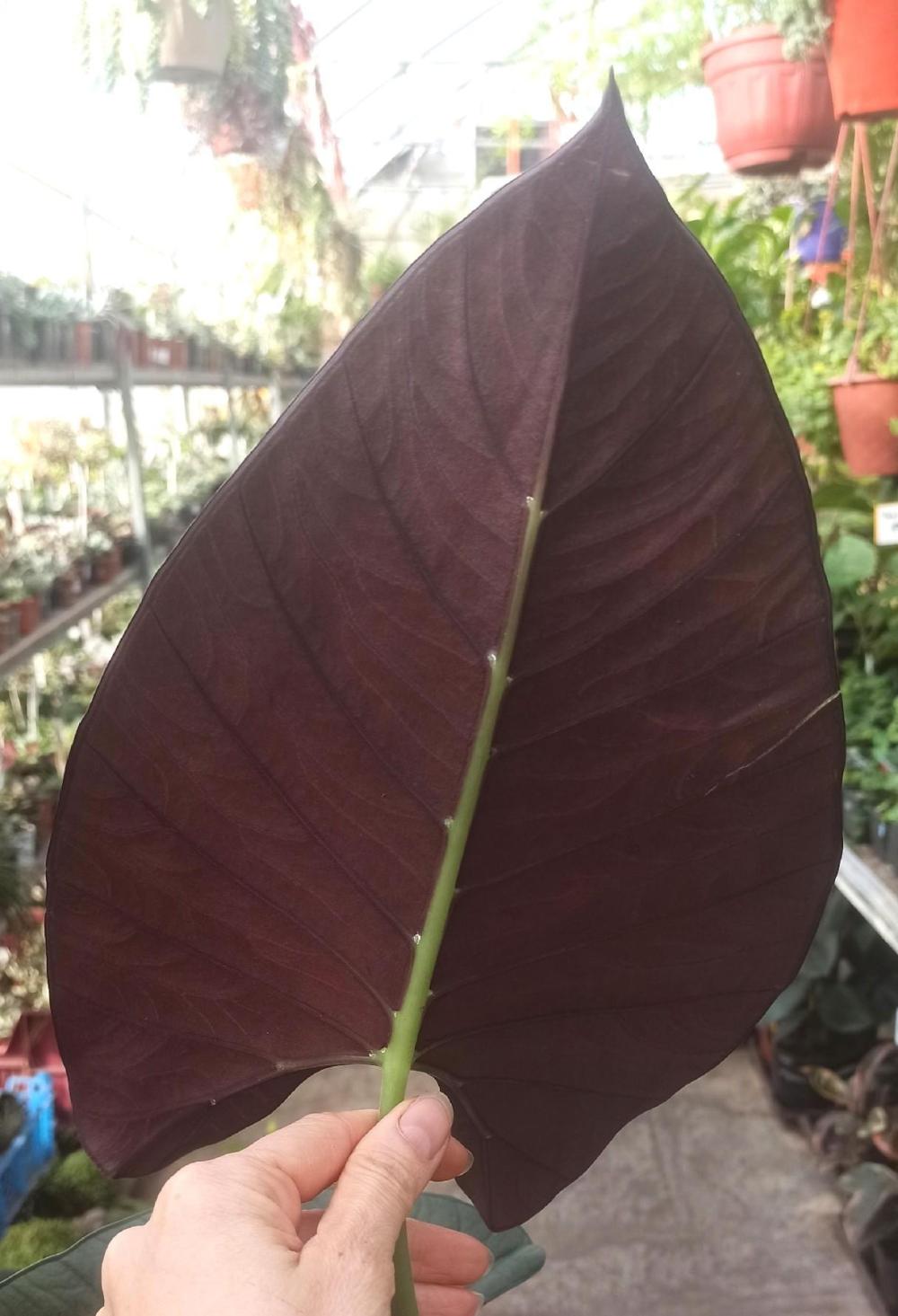 Лист очень крупный, по плотности как у Мело, обратная сторона листа бордовая