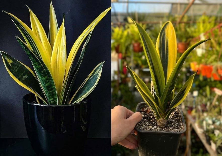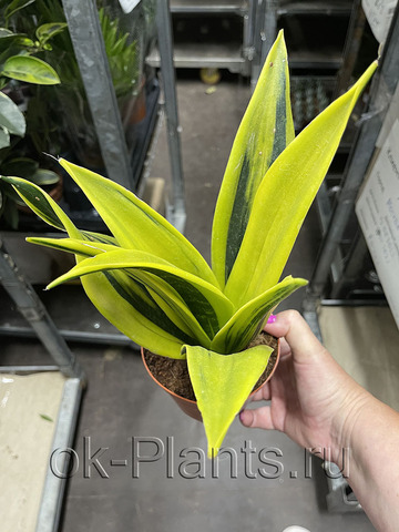 Сансевиерия «Голден Флейм» — это декоративный суккулент с яркой окраской листьев, названный так из-за двухцветной расцветки, напоминающей пламя. У него узкие, ланцетные листья, которые могут быть высотой 50-60 см. Наружная сторона листьев тёмно-зелёная с желтыми краями, а внутренняя сторона имеет огненно-оранжевые или жёлтые тона с зелёными вкраплениями.