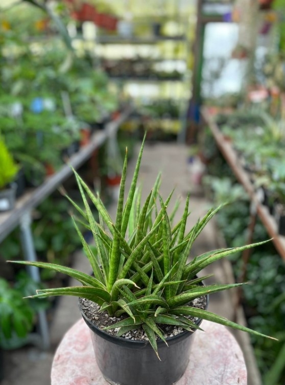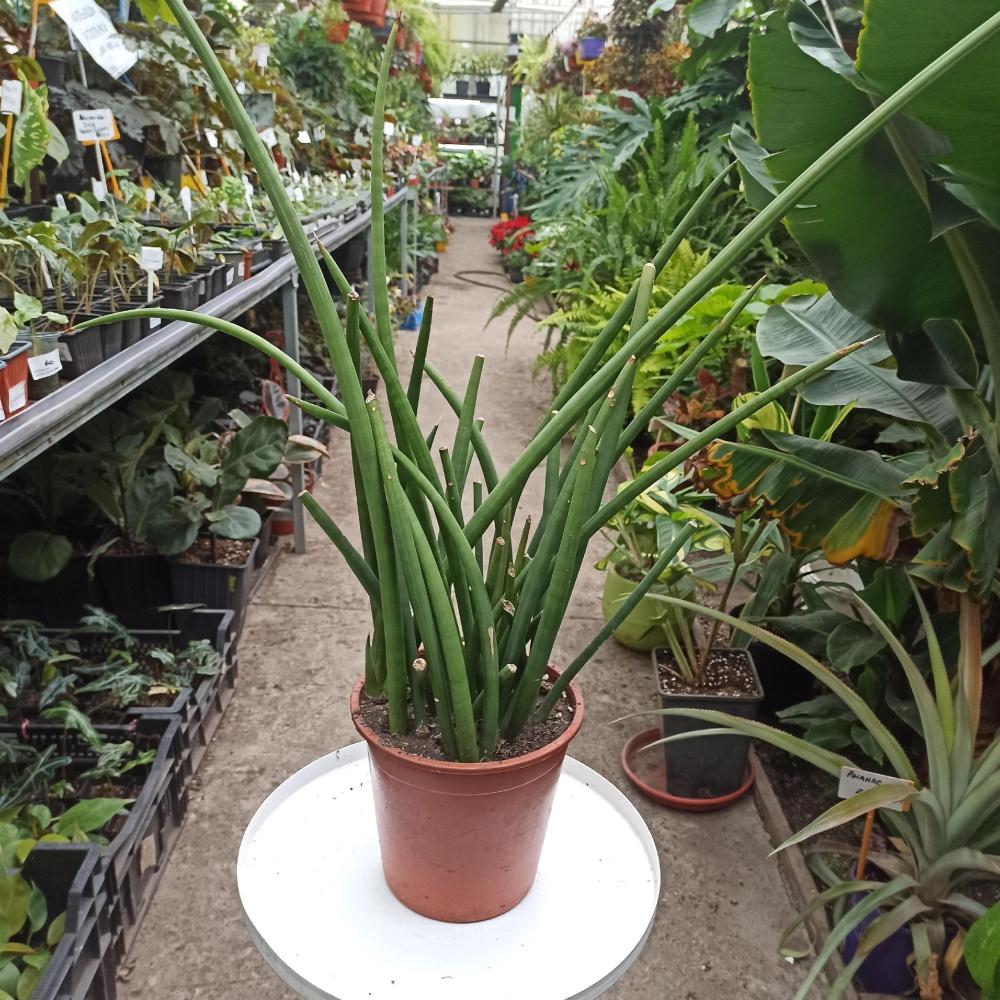 Сансевиерия Цилиндрика — это суккулент с уникальными цилиндрическими листьями, которые растут вертикально вверх и напоминают копья или цилиндры. Она ценится за свою неприхотливость, устойчивость к засухе и современный, минималистичный внешний вид. Это растение может достигать высоты до 90 см или даже 1,5 метра, а листья могут иметь однотонный зелёный цвет или быть украшены поперечными полосками.