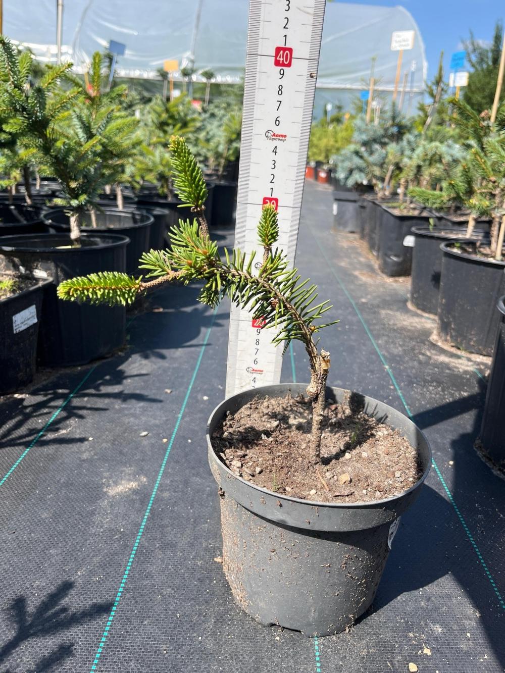 Ель обыкновенная 'Инверса' — это декоративный сорт с уникальной плакучей формой кроны, у которой ветви свисают вертикально вниз, плотно облегая ствол, а нижние ветви ложатся на землю. Высота регулируется подвязкой лидирующего побега (обычно до 6-8 м), без неё может стелиться. Хвоя темно-зеленая, густая, блестящая, шишки коричневые. Хорошо растет на солнце или в полутени, предпочитает влажные, дренированные почвы, морозостойка. Используется как солитер или в групповых композициях.