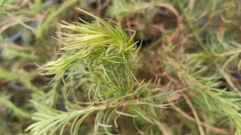 Хвоя короткая, светло-зеленая, длиной 2-3 см.