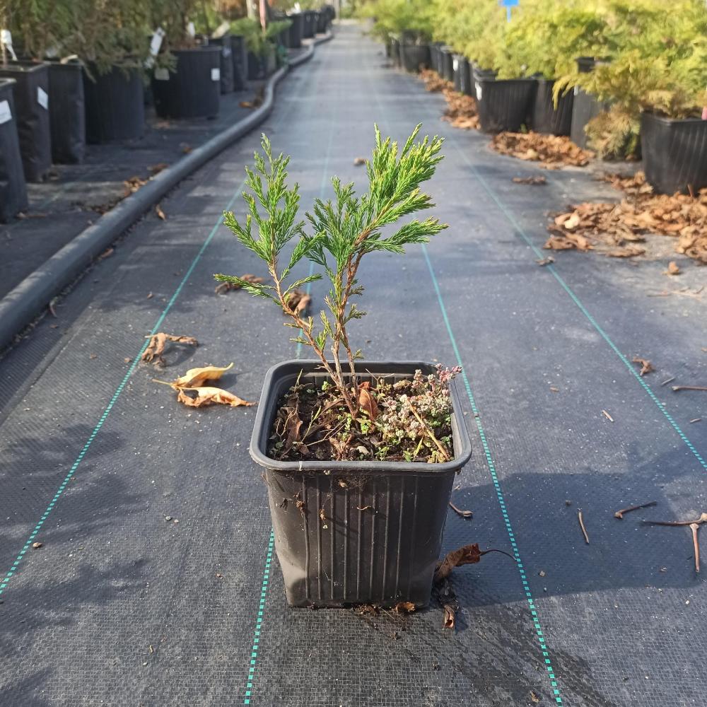 Можжевельник горизонтальный 'Andorra Compact' — это низкорослый вечнозеленый кустарник с плотной подушковидной кроной и сизо-зеленой хвоей, которая зимой приобретает фиолетовый оттенок. Он медленно растет, достигая 30–40 см в высоту и до 1 м в ширину, устойчив к морозам и засухе, а также неприхотлив к почвам. Идеально подходит для каменистых садов, одиночных и групповых посадок. Основные характеристики Крона: Плоская, подушковидная, с приподнимающимися вверх кончиками побегов. Хвоя: Мелкая, чешуйчатая, сизо-зеленого цвета, которая зимой приобретает красивый фиолетовый оттенок. Размеры: Высота до 30–40 см, ширина до 1 м. Взрослые растения могут достигать до 80 см в высоту и 2 м в диаметре. Рост: Медленный, ежегодный прирост составляет 2–3 см или до 10 см в год. Условия выращивания Посадка: Лучше всего сажать на солнечных местах, но переносит и небольшое затенение. Почва: Предпочитает хорошо дренированные, супесчаные или суглинистые почвы. Полив: Умеренный, не любит застоя воды. В жаркую погоду может нуждаться в периодическом поливе и опрыскивании кроны. Зимостойкость: Высокая, выдерживает морозы до -34 C. Засухоустойчивость: Взрослые растения достаточно засухоустойчивы.