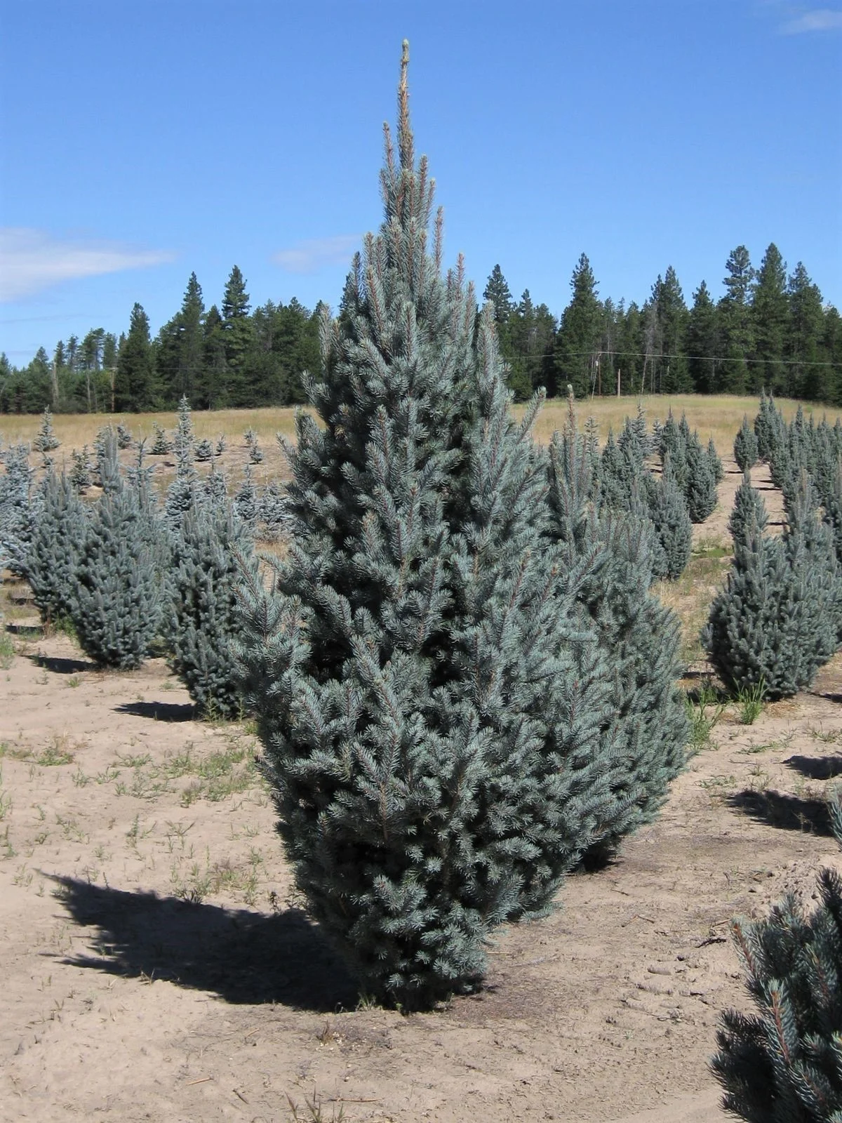 Хвоя: Жесткая, колючая, сравнительно длинная (около 2,5 см), серебристо-голубого цвета с синим отливом.