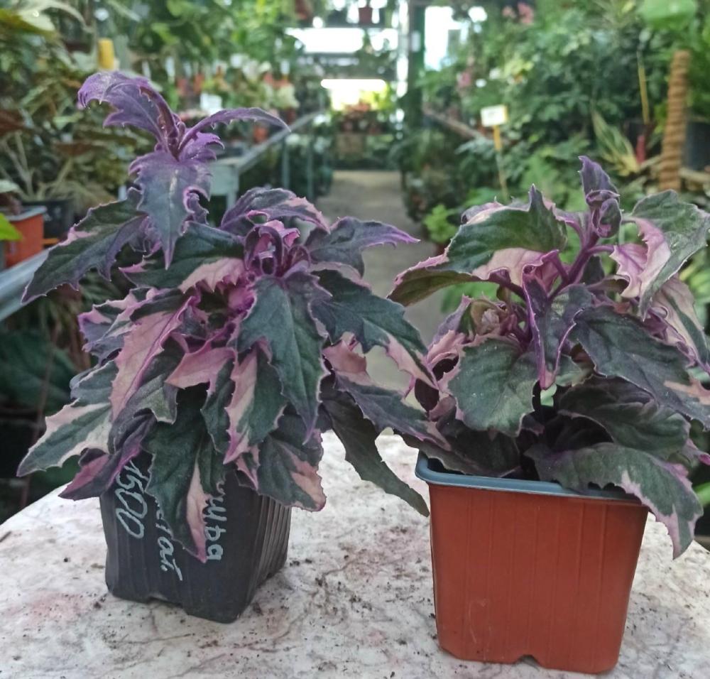 Гинура Вариегатная – это редкая пестролистная форма, отличающаяся бархатистыми листьями с узорами из зеленых и кремово-белых/желтоватых пятен, покрытыми характерным фиолетовым опушением, что создает мраморный или мозаичный эффект; она более компактна, растет ампельно или кустиком, идеальна для кашпо, но требует яркого света и умеренного полива.