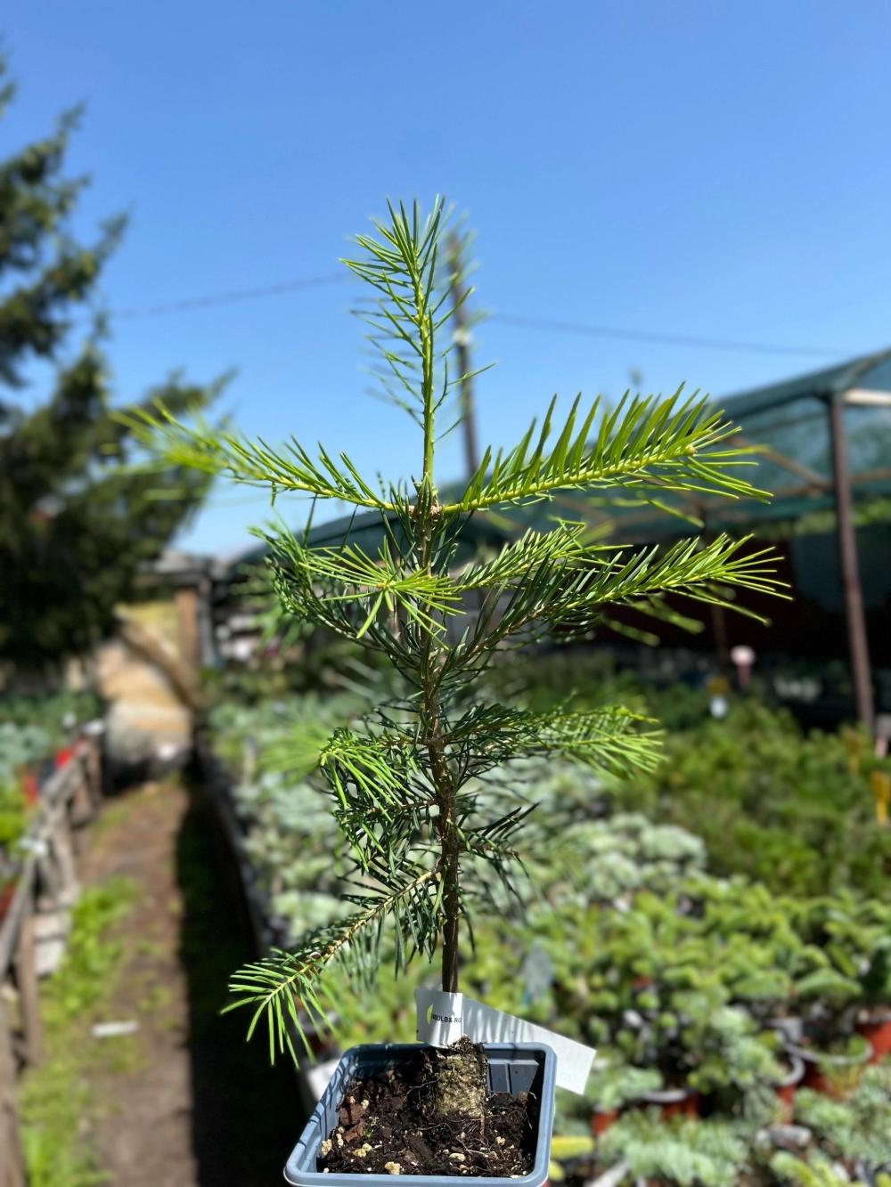 Хвоя: Мягкая, плоская, длиной 1.5-6 см, серповидно изогнутая, серо-зелёного или сизого цвета с беловатыми полосками с обеих сторон. Имеет сильный камфорный или лимонный аромат.