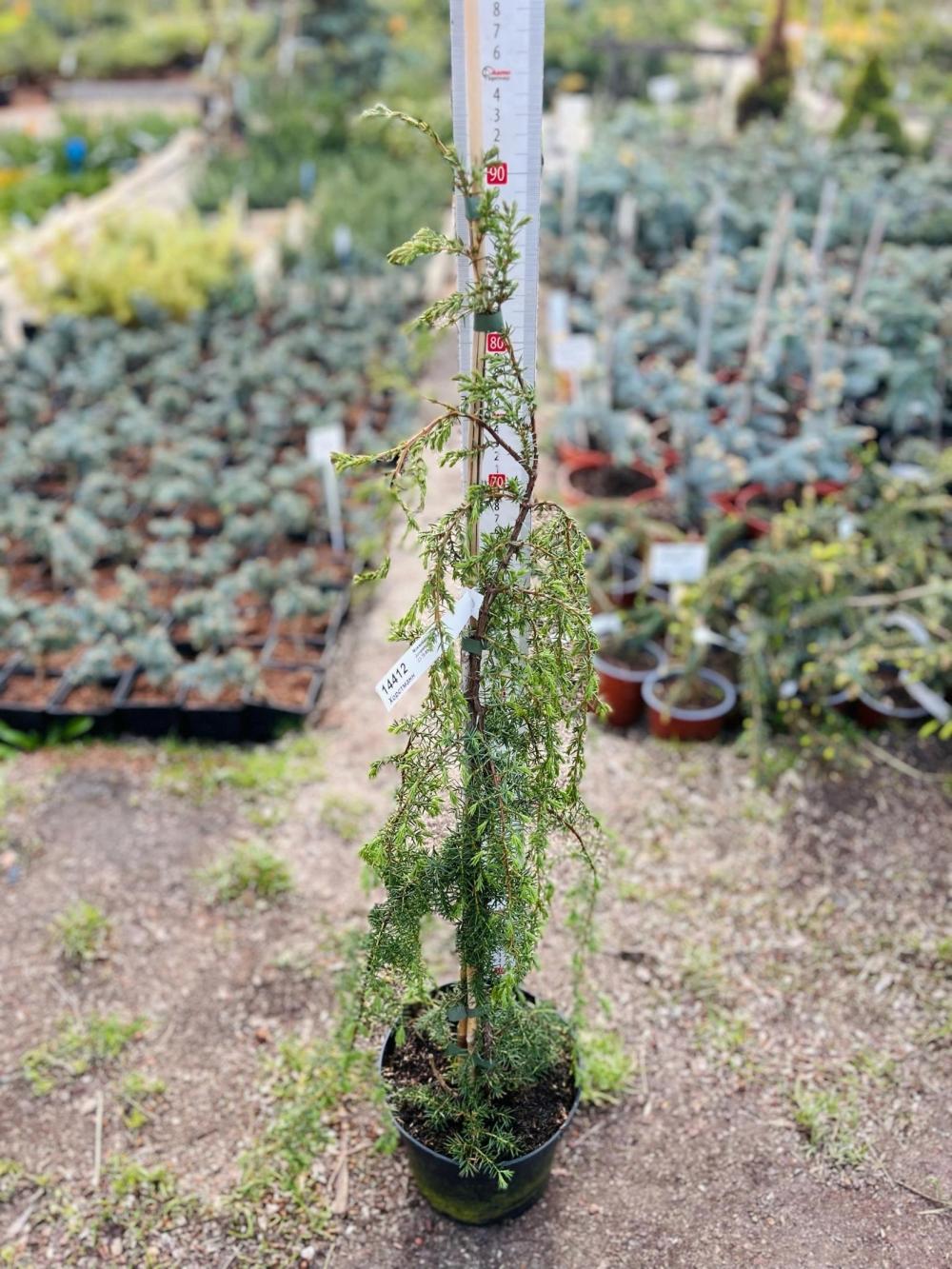 Можжевельник обыкновенный «Хорстманн» — это декоративный хвойный кустарник с эффектной плакучей кроной, которая образуется благодаря свисающим вниз концам широко раскинутых ветвей. Его высота достигает 2,5-3 метров, а диаметр — около 2-3 метров.Сорт отличается высокой зимостойкостью, неприхотливостью к почве (предпочитает легкие, дренированные, слегка кислые грунты) и устойчивостью к городским условиям.Для формирования красивой плакучей формы ему требуется опора и подвязка центрального проводника, а также регулярная стрижка. Крона: Плакучая, раскидистая, с дугообразными ветвями и свисающими концами, напоминает хвойную иву. Хвоя: Колючая, темно-зеленая, игольчатая, плотная.Плоды: Шишкоягоды сине-голубого цвета с восковым налетом. Условия выращивания Свет: Предпочитает солнечные места, но может расти и в полутени. В густой тени декоративность снижается, хвоя становится бледной.Почва: Неприхотлив, хорошо растет на различных почвах, но лучше всего чувствует себя на легких, рыхлых, суглинистых или супесчаных грунтах со слабокислой или нейтральной реакцией. Плохо переносит застой влаги и заболачивание. Предпочитает умеренное увлажнение. Хорошо переносит засуху, но плохо — переувлажнение.