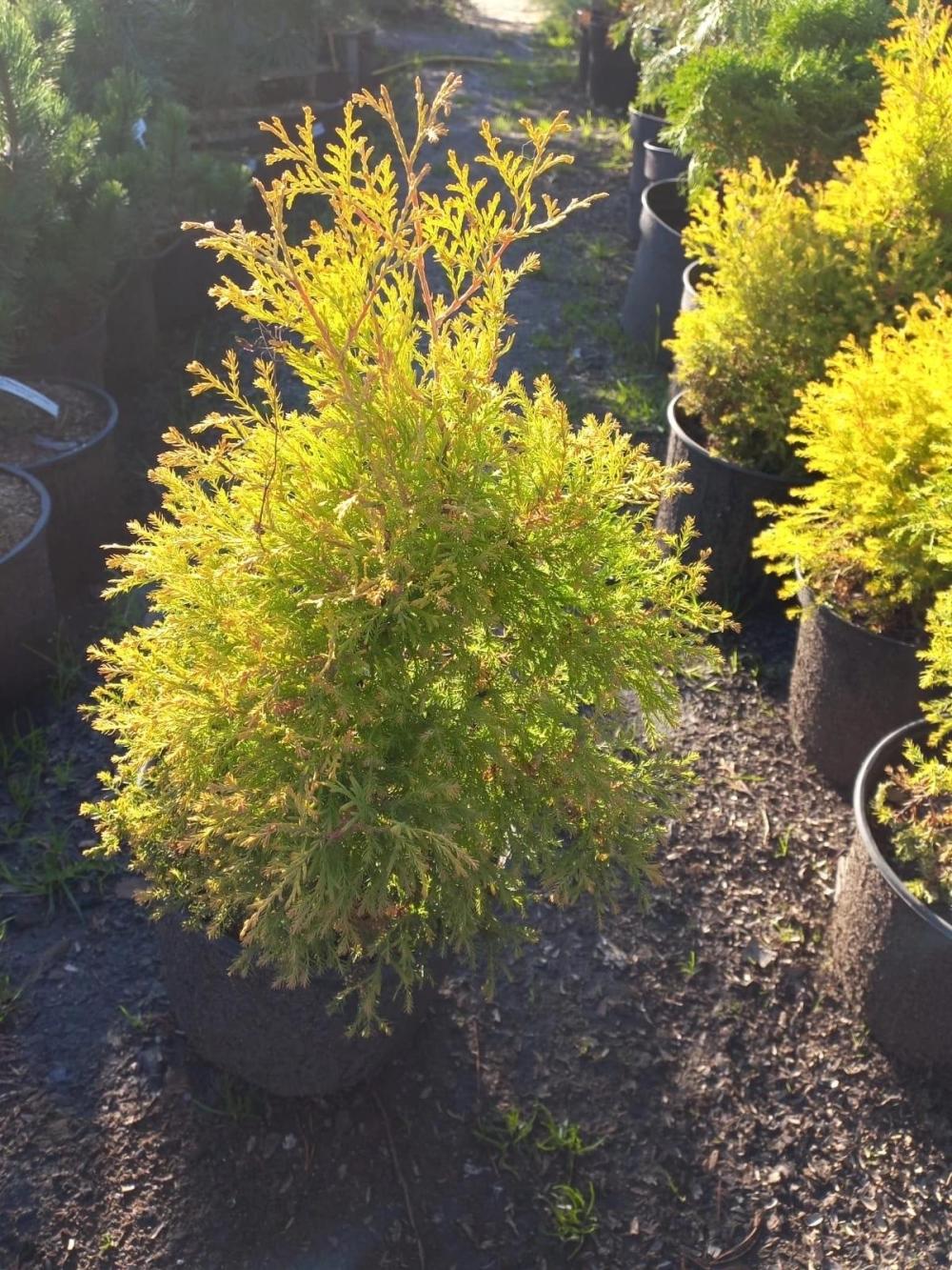 Характеристики Крона: В молодости — шаровидная или подушковидная, с возрастом — ширококоническая. Хвоя: Ярко-золотисто-желтая (зимой бронзово-коричневая), мягкая, чешуйчатая. Молодые побеги могут иметь розоватый оттенок. Рост: Медленный, годовой прирост около 10 см в высоту. Размер: Максимальная высота 2–3 м, в 10 лет около 1 м. Зимостойкость: Высокая, выдерживает морозы до -45 C.