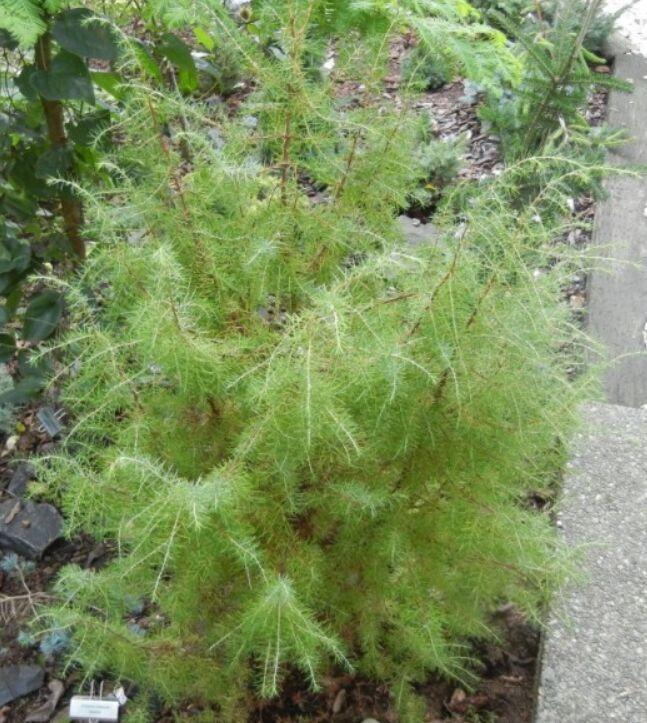 Хвоя: Тонкая, игольчатая. Весной светло-зеленая, летом - зеленая, осенью - бронзово-желтая, зимой - оранжево-желтая.
