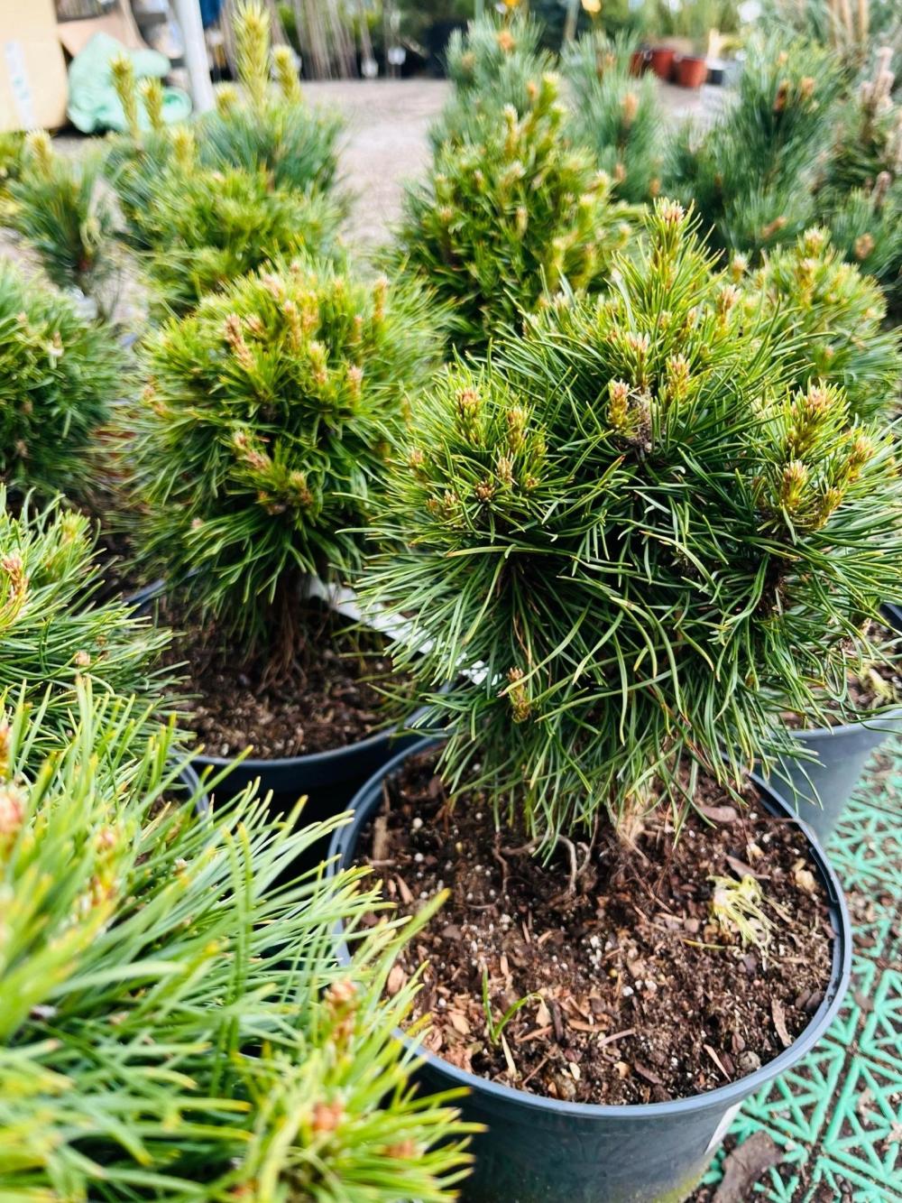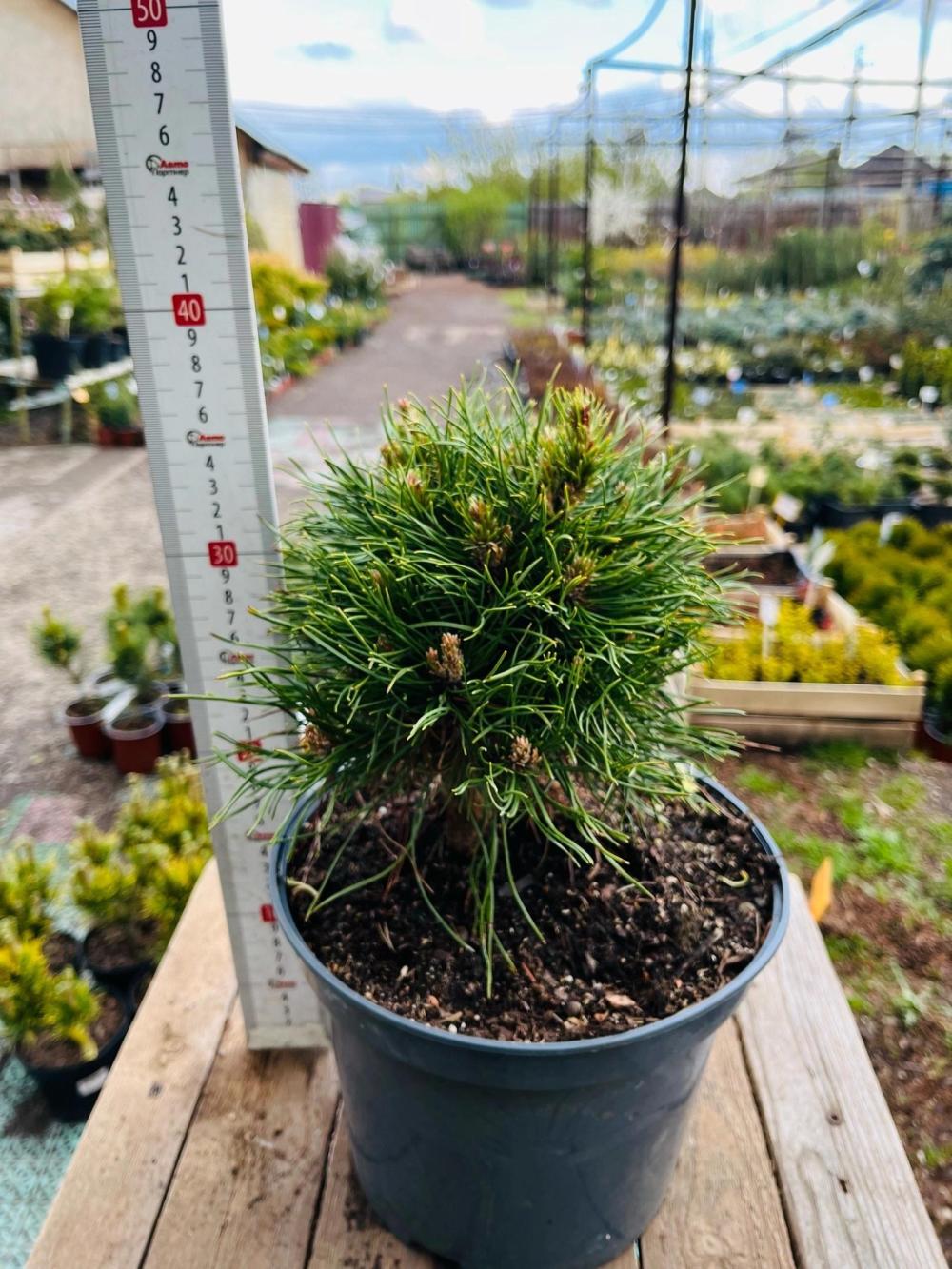 Сосна горная 'Varella' — это карликовый сорт с плотной шаровидной или подушковидной кроной, достигающий 1–1,5 м в высоту и до 1,5–1,7 м в диаметре. Ее главная особенность – длинная темно-зеленая хвоя (до 10-12 см), которая контрастирует с более короткими молодыми приростами, создавая пушистый вид. Этот медленнорастущий сорт нетребователен к почве, морозостоек и солнцелюбив.