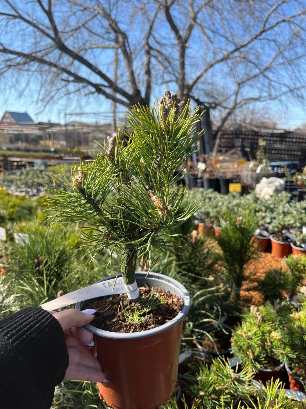 Хвоя: Темно-зеленая, блестящая, жесткая и короткая, собрана в пучки по две штуки.