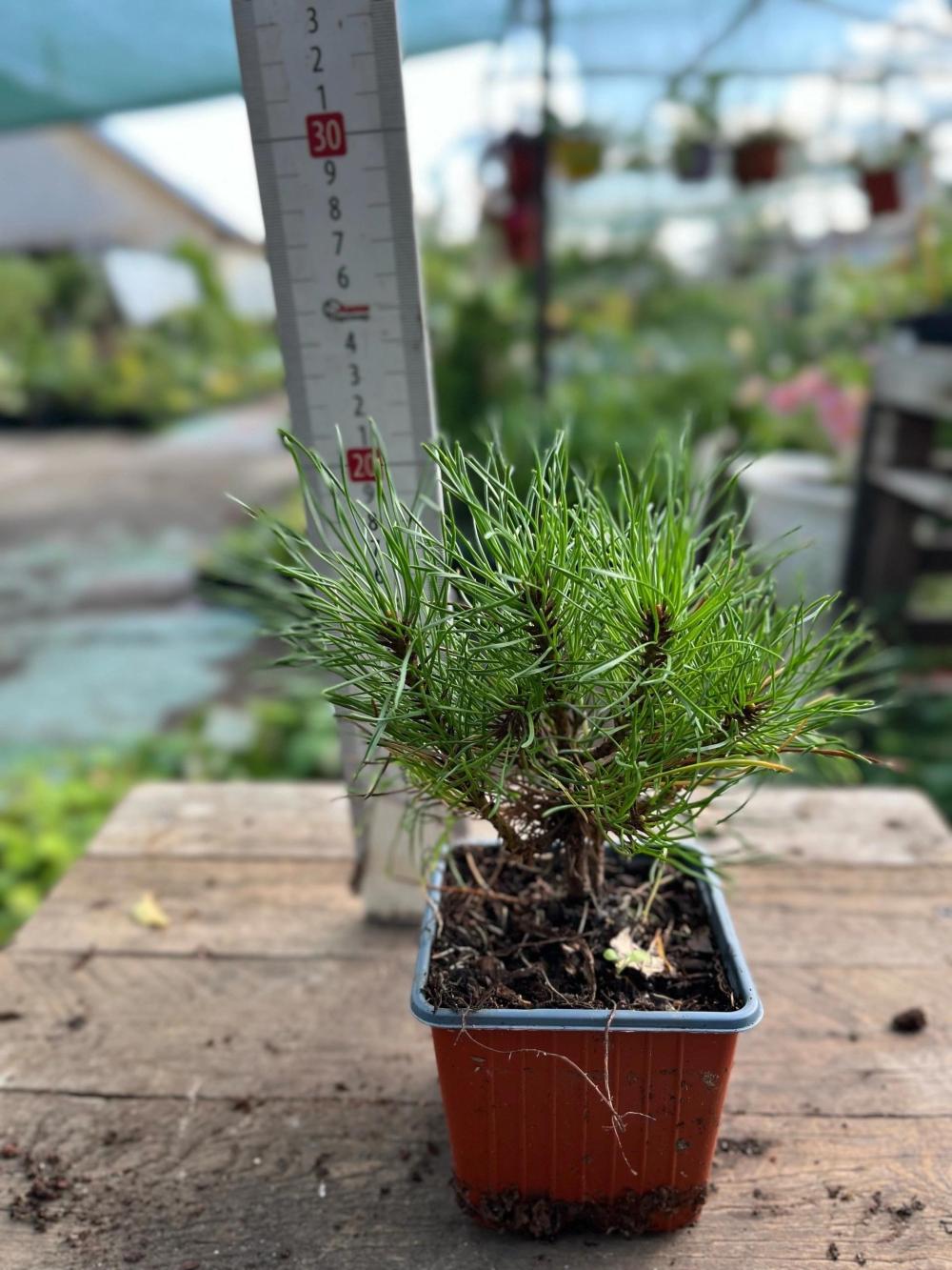 Сосна горная 'Пумилио' (Pinus mugo Pumilio) — это медленно растущий, карликовый, вечнозеленый кустарник с густой, распростертой или подушковидной кроной, достигающий 1-1.5 м в высоту и 3 м в ширину. Отличается жесткой, короткой, темно-зеленой хвоей и неприхотливостью: любит солнце, морозостойка, засухоустойчива, растет на разных почвах, но не терпит переувлажнения. Молодые побеги направлены вверх, создавая плотный купол над стелющимися ветвями, идеально подходит для альпинариев, рокариев и контейнеров.