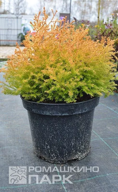 Туя западная 'Rheingold' (Рейнголд) — это медленно растущий карликовый сорт с золотисто-желтой хвоей, которая зимой приобретает бронзовый оттенок, а молодые побеги — розоватый, что делает ее декоративной круглый год. Крона вначале шаровидная или подушковидная, со временем становится конической или яйцевидной, достигая 2-3 м в высоту, но часто остается компактной. Любит солнце, влажные плодородные почвы и хорошо переносит стрижку, идеальна для солитерных посадок, альпинариев и живых изгородей.