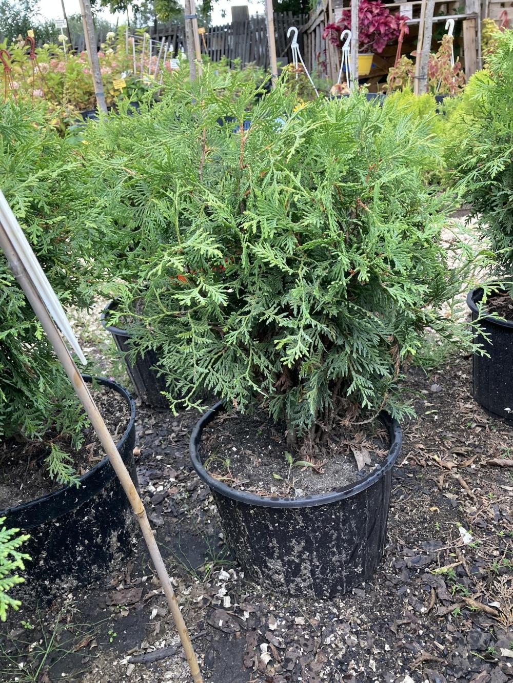 Туя западная 'Globosa' (Глобоза) — медленнорастущий карликовый сорт с плотной шаровидной кроной до 1,5 м в диаметре и такой же высотой, идеален для живых изгородей, альпинариев и контейнеров, нетребователен к почве, но ценит влагу, устойчив к морозам, но нуждается в поддержке зимой для защиты от снега, меняет цвет хвои от светло-зеленого летом до бронзового зимой.