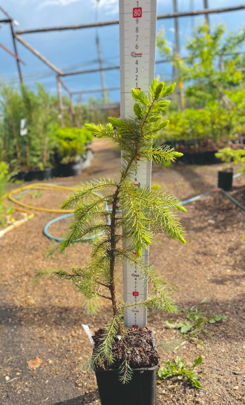Ствол ровный, серо-коричневый, с возрастом может достигать 1 м в диаметре. Стержневая система с поверхностными боковыми корнями. Светолюбива, но переносит легкую тень. Неприхотлива, предпочитает дренированные суглинки, супеси, хорошо растет на известковых почвах. Засухоустойчивость: Хорошая, лучше многих других елей.