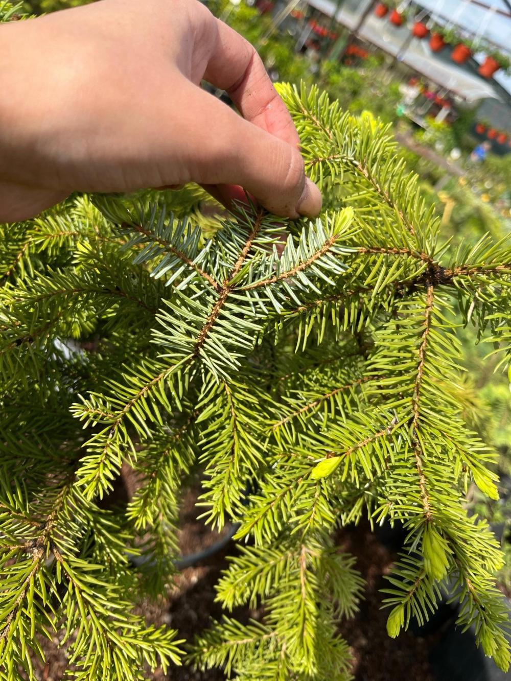 Ель сербская Видовая норма — ценится за узкую пирамидальную крону, блестящую темно-зеленую хвою с серебристой изнанкой, пурпурные шишки и неприхотливость к почве и городским условиям. В природе вырастает 20-35 м, в культуре компактнее (до 20 м), долговечна, морозоустойчива, хорошо растет на солнце или в полутени, не любит застой воды.