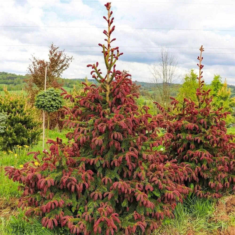 Ель обыкновенная «Акрокона» (Picea abies 'Acrocona') — медленнорастущий, невысокий сорт с ширококонической, часто асимметричной формой кроны, главная особенность которого — множество ярких, малиново-пурпурных шишек, появляющихся на концах ветвей в молодом возрасте, что делает её очень декоративной; она предпочитает солнце или полутень, влажные, но дренированные почвы и хорошо подходит для одиночных и групповых посадок.
