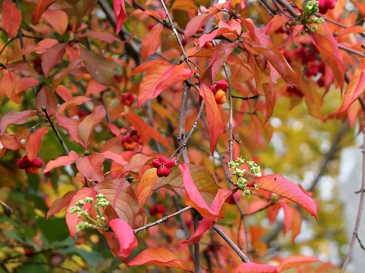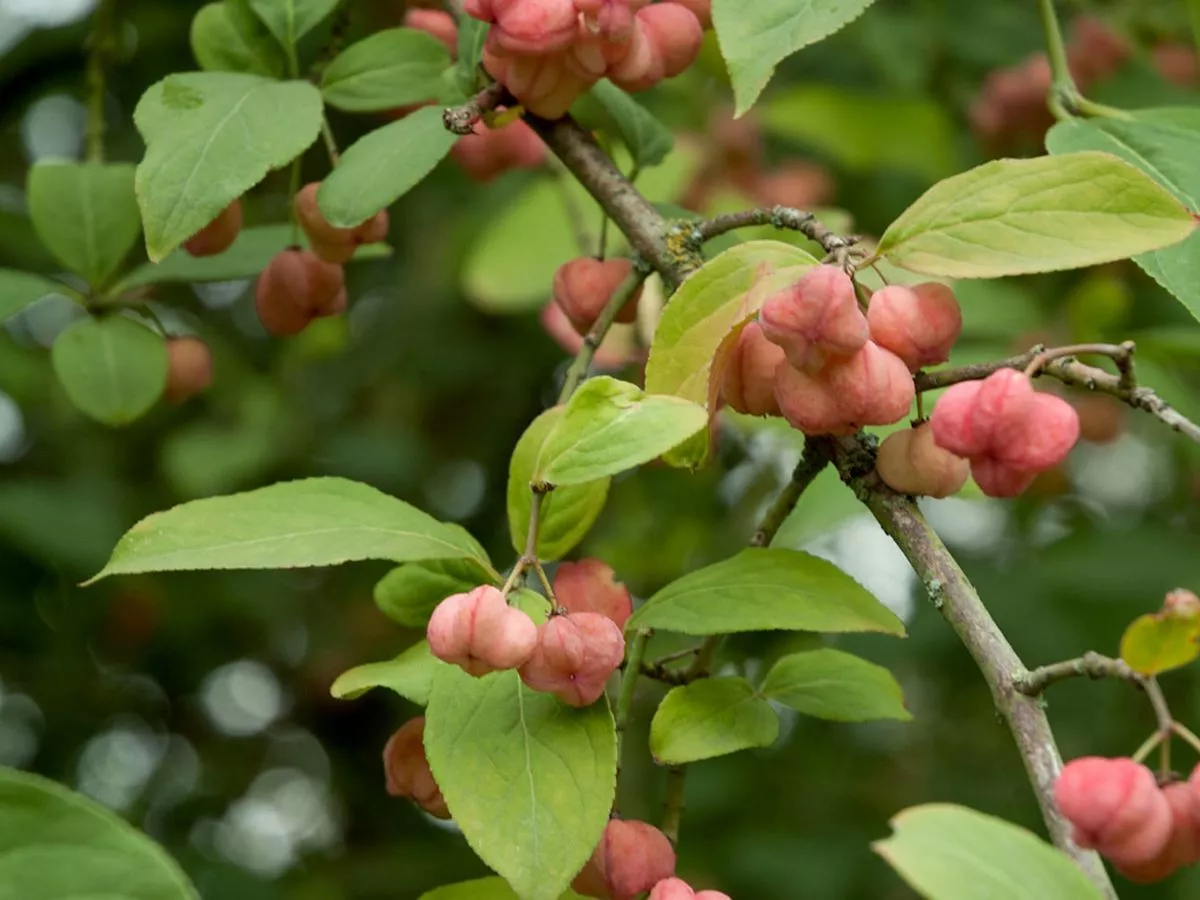 Бересклет европейский – это листопадный кустарник или небольшое дерево высотой 2–5 метров, отличающееся декоративной листвой и плодами. Летом листья темно-зеленые, а осенью приобретают яркие желто-красные или пурпурные оттенки. Цветёт невзрачными белыми или зеленовато-белыми цветками с мая по июнь, а осенью украшается декоративными четырехстворчатыми коробочками, которые раскрываются, обнажая семена с ярко-оранжевым присемянником. Растение морозостойкое, хорошо переносит стрижку и подходит для создания живых изгородей, групповых композиций и солитерных посадок. Характеристики Высота: 2–5 м. Крона: объемная, ажурная. Листья: темно-зеленые летом, осенью желто-красные или пурпурные. Цветы: мелкие, невзрачные, беловато-зеленые, собраны в полузонтики. Цветение: май–июнь. Плоды: четырехстворчатые коробочки, розовые или красные с оранжевыми семенами; созревают в конце лета — начале осени. Морозостойкость: высокая, до -30 C. Темп роста: средний.