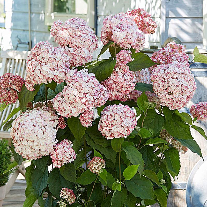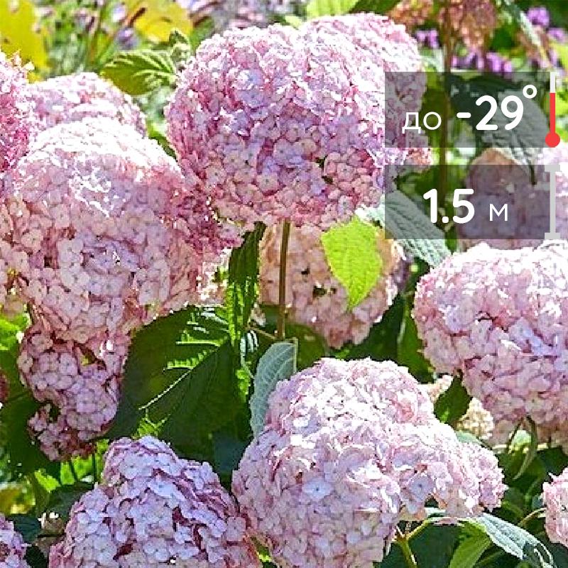 Гортензия древовидная Кандибелле Стендап Пинк (Hydrangea arborescens Candybelle Stand Up Pink) — это крепкий, раскидистый кустарник до 1-1,2 м высотой, с сильными побегами, не гнущимися под тяжестью крупных шаровидных соцветий, меняющих цвет от нежно-розового в начале лета до белого или сиреневато-розового к осени, цветет обильно с июня по август/октябрь, предпочитает солнечное или полутеневое место и плодородные влажные почвы, отличается хорошей зимостойкостью и приятным ароматом.