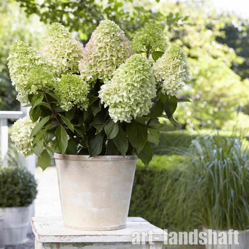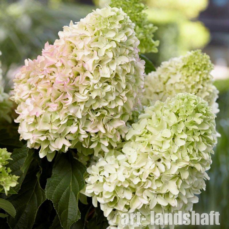 Изменение цвета соцветий: Начинаются цветение в кремово-белых и светло-зеленых тонах, затем постепенно приобретают нежно-розовые оттенки.