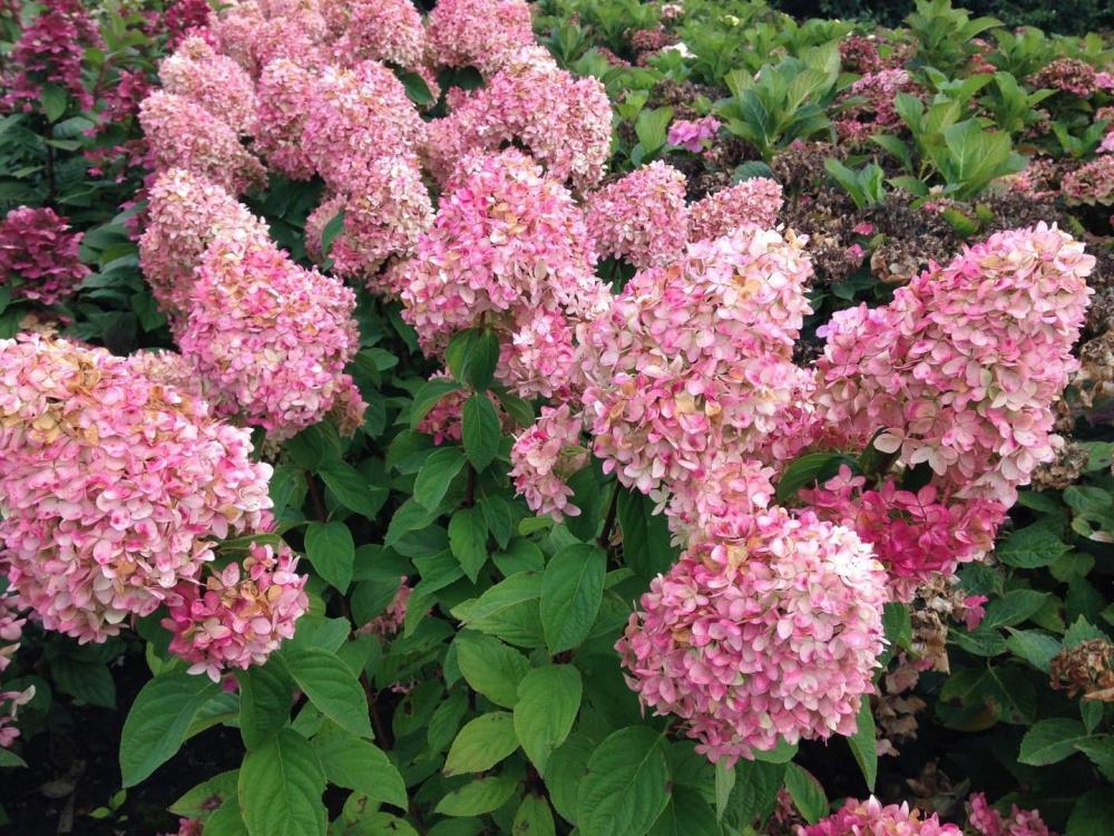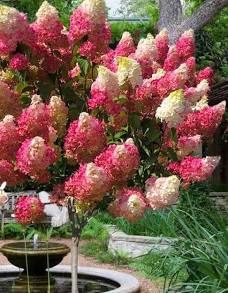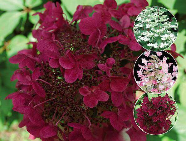 Соцветия: Крупные (30-40 см), узкопирамидальные, рыхлые, ажурные, меняют цвет в течение сезона: белые, затем розовые, к осени — насыщенно-красные/винные.