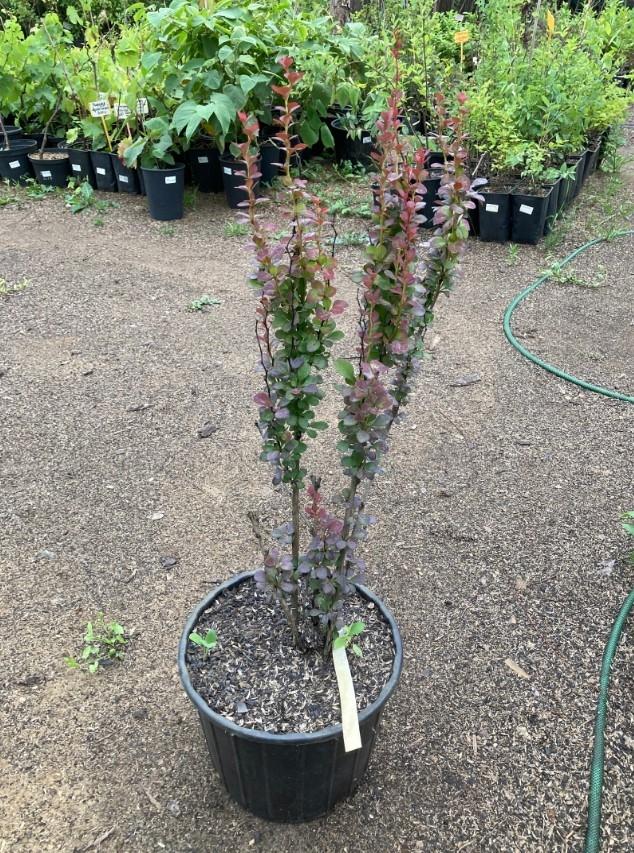 Барбарис Тунберга 'Red Pillar' — это колоновидный кустарник до 1.5 м высотой с жесткими, прямостоячими побегами, образующими плотную крону; листья пурпурно-красные, осенью становятся ярко-алыми, цветки мелкие, желтые, а плоды – красные, держатся до зимы; светолюбив, нетребователен к почве, засухоустойчив, хорошо переносит стрижку, идеален для живых изгородей и акцентов, но в суровые зимы может подмерзать.
