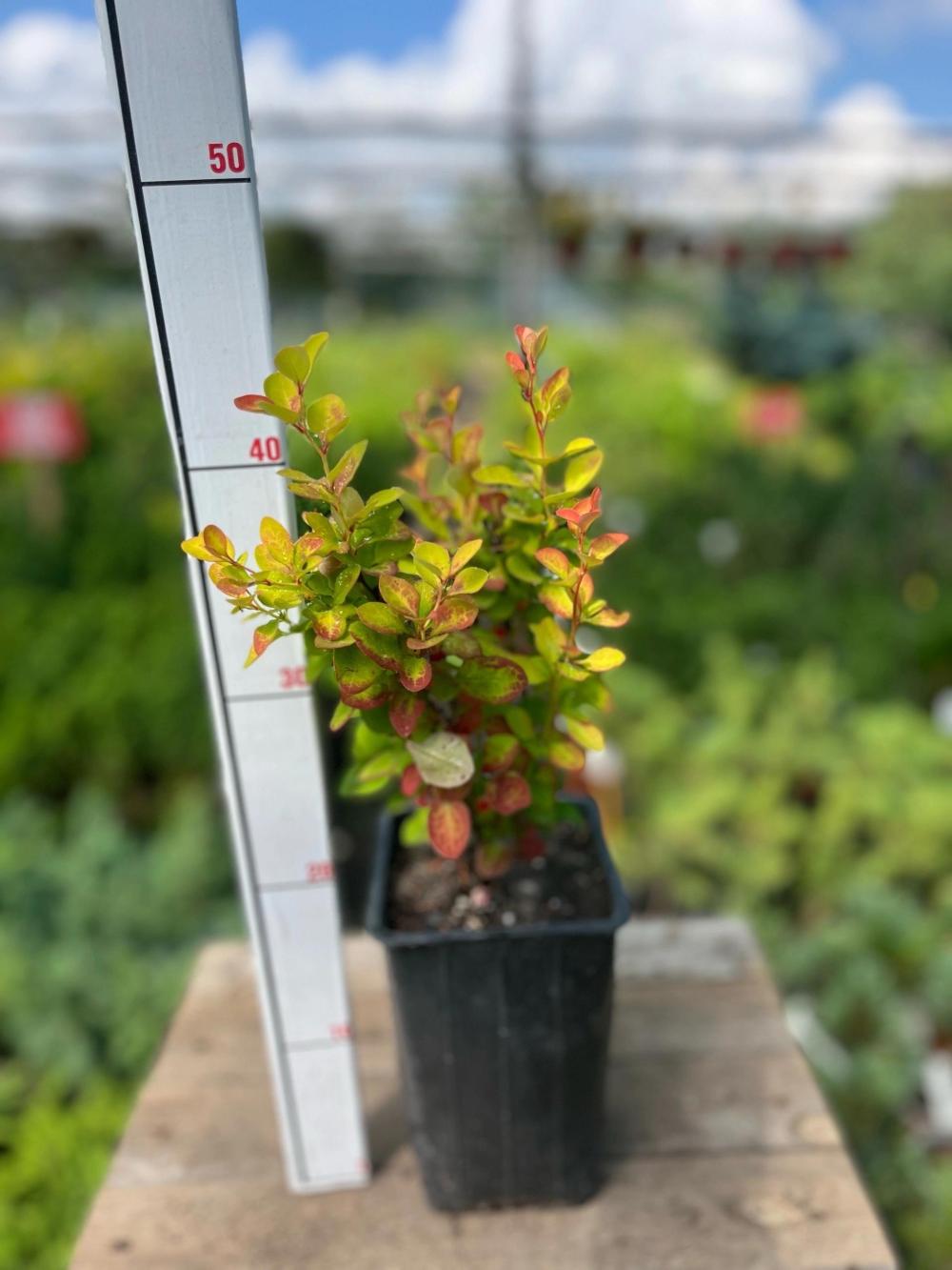 Барбарис Тунберга 'Limoncello' — это компактный, колючий кустарник с яркой лимонно-желтой листвой, окаймленной красными пятнышками или каймой, образующий аккуратную округлую крону до 0.9-1.2 м высотой. Осенью листья приобретают оранжевые и красные оттенки. Он предпочитает солнце, хорошо переносит обрезку, морозостоек и неприхотлив к почве, идеален для бордюров, живых изгородей и каменистых садов.