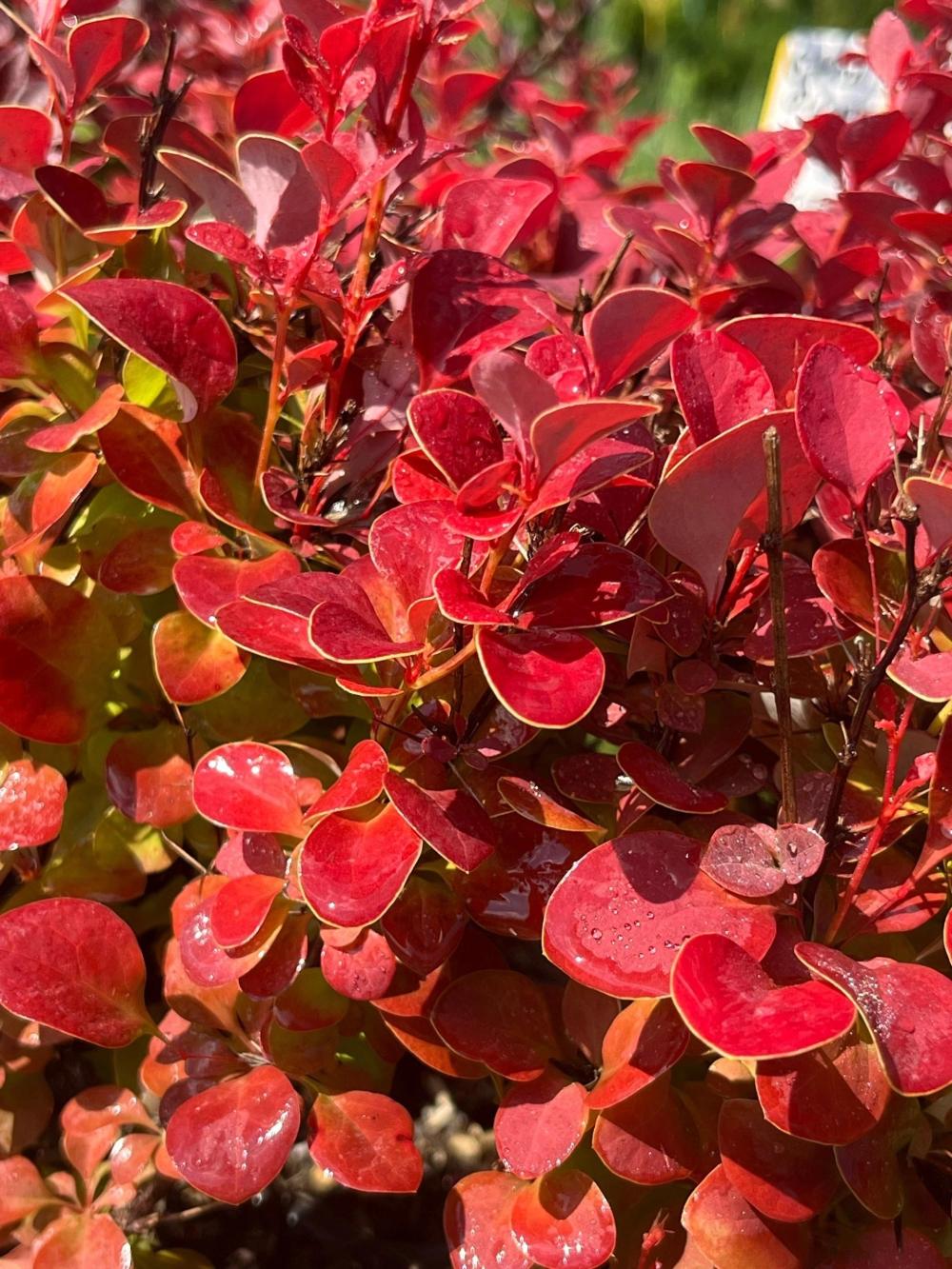 Листва: Мелкая, овальная, блестящая. Молодые листья темно-розовые, внутри куста — зеленые. Летом розово-красные, осенью становятся красными или красно-оранжевыми.
