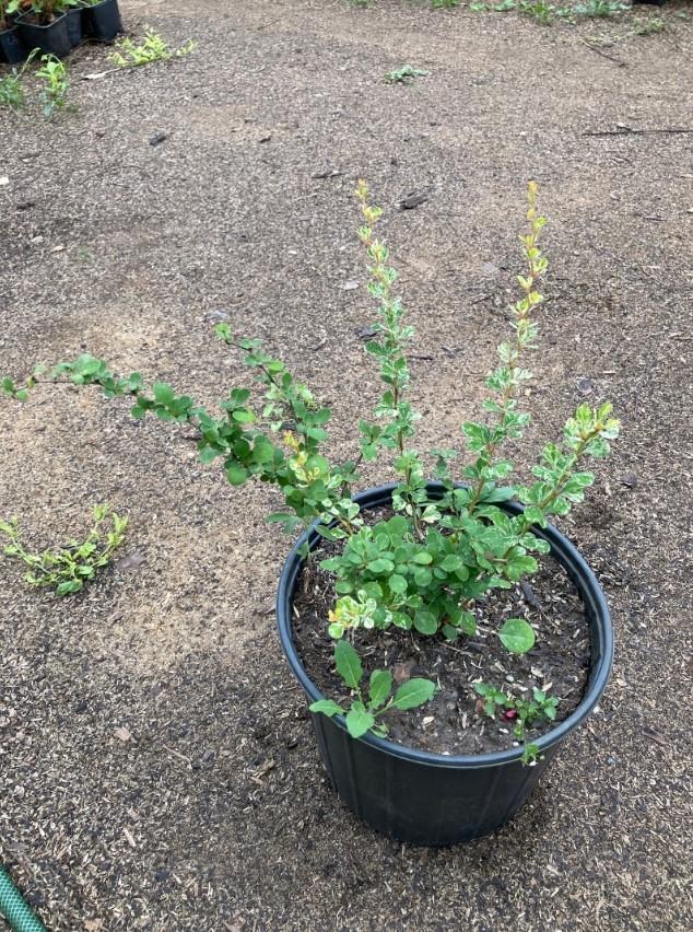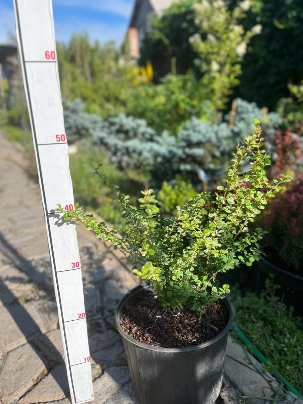Барбарис Тунберга 'Kelleriis' (Келлерис) — это раскидистый кустарник до 2 м высотой с пестрыми зелеными листьями, украшенными белыми пятнами, которые осенью розовеют и краснеют; цветет желтыми цветами в мае, а осенью радует коралл-красными, блестящими плодами, долго держащимися на ветках; светолюбив, засухоустойчив, не требователен к почве, зимостоек, идеален для бордюров, живых изгородей и цветных композиций.
