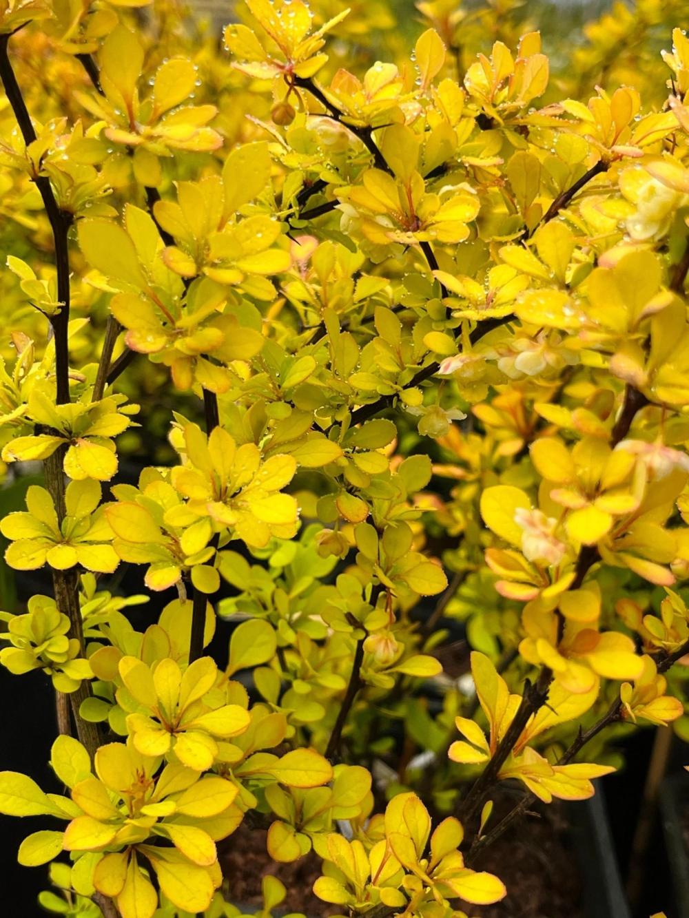 Листья: Мелкие, золотисто-желтые, весной лимонные, осенью красноватые.