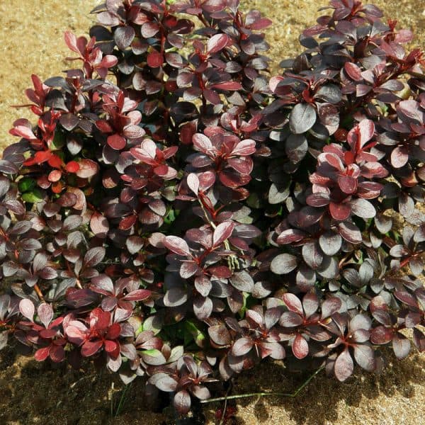 Листья: Мелкие, глянцевые, темно-пурпурные, осенью становятся ярко-красными или оранжевыми.