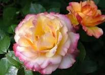 Роза чайно-гибридная «Акварель» (Aquarell) – это сорт Тантау с крупными, густомахровыми цветками до 12 см, сочетающими кремовые, персиково-желтые и розово-малиновые оттенки, напоминающие акварельный рисунок, с сильным фруктовым ароматом. Куст сильный, прямостоячий (70-90 см), с темно-зеленой глянцевой листвой, обильно цветет волнами, устойчив к болезням, но требует укрытия зимой.