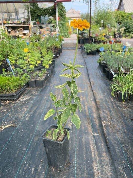 Гелиопсис Дабл Санстрак (Heliopsis Double Sunstruck) — эффектный, неприхотливый многолетник с крупными, ярко-желтыми, махровыми цветами-«ромашками» и контрастной пестрой листвой (кремовой с зелеными прожилками), которая сама по себе является украшением, цветет обильно все лето до осени, зимостойкий, высотой 30-70 см, любит солнце и хорошо дренированные почвы, идеально подходит для миксбордеров и срезки.