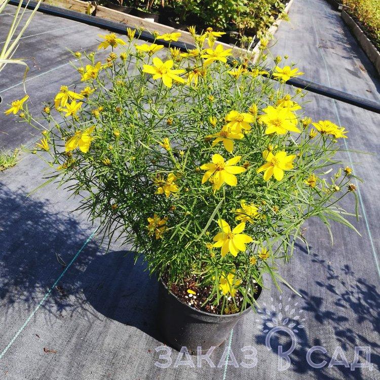 Кореопсис мутовчатый «Загреб» (Coreopsis verticillata 'Zagreb') — компактный, неприхотливый многолетник высотой 20-40 см, образующий ажурные кустики с узкими, игловидными светло-зелеными листьями, обильно усыпанными в июле-сентябре яркими золотисто-желтыми «ромашками» до 3-4 см в диаметре, которые привлекают бабочек и прекрасно смотрятся в бордюрах, альпийских горках и контейнерных посадках, любит солнце и хорошо дренированные, легкие почвы, зимостоек и долговечен.
