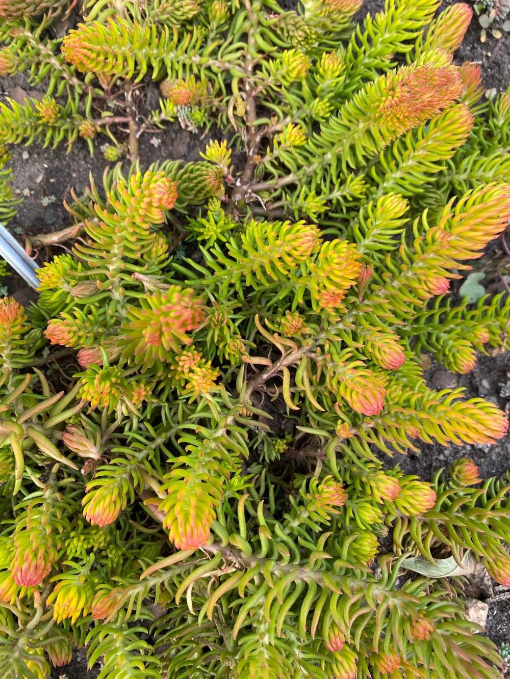 Седум «Ангелина» (Sedum Angelina) — это неприхотливый, вечнозеленый, низкорослый почвопокровный суккулент, формирующий плотные коврики из ярких, узких, игольчатых листьев, которые меняют цвет от салатово-желтого летом до ярко-оранжевого осенью и зимой, цветет мелкими желтыми цветками в июле-августе, устойчив к засухе, морозу и хорошо растет на солнце.