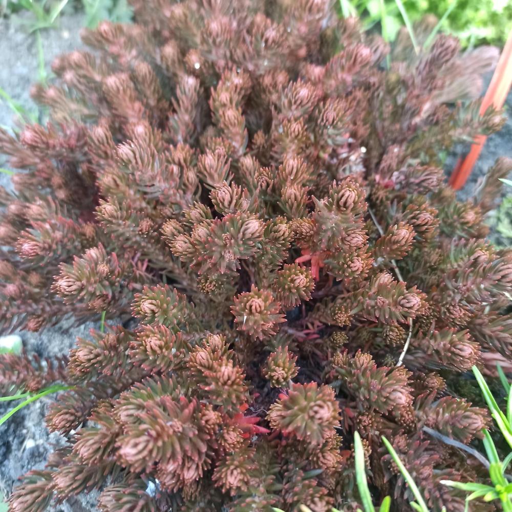 Седум Шоколад Бол (Очиток отогнутый) – это низкорослый почвопокровный суккулент, образующий плотные шоколадно-коричневые или бронзовые коврики, похожие на еловые веточки, облитые шоколадом. Летом покрывается ярко-желтыми звездчатыми цветами. Осенью листва становится огненно-красной, а зимой – темно-коричневой. Неприхотлив, любит солнце и хорошо дренированные, бедные почвы, идеально для альпинариев, контейнеров.