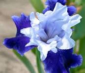 Окраска: Стандарты (верхние лепестки) — голубовато-белые с прожилками, фолы (нижние лепестки) — темно-фиолетовые, с яркой оранжевой или кораллово-красной бородкой.