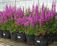 Дербенник иволистный (Lythrum salicaria) — высокий (до 2 м) многолетник с жесткими стеблями и узкими листьями, напоминающими ивовые. Цветет с середины лета до осени яркими пурпурно-розовыми или малиновыми цветками, собранными в колосовидные соцветия. Растение любит влагу (растет у водоемов) и солнце, неприхотливо, зимостойко, а осенью листья окрашиваются в оранжево-багряные тона, создавая осеннюю декоративность.