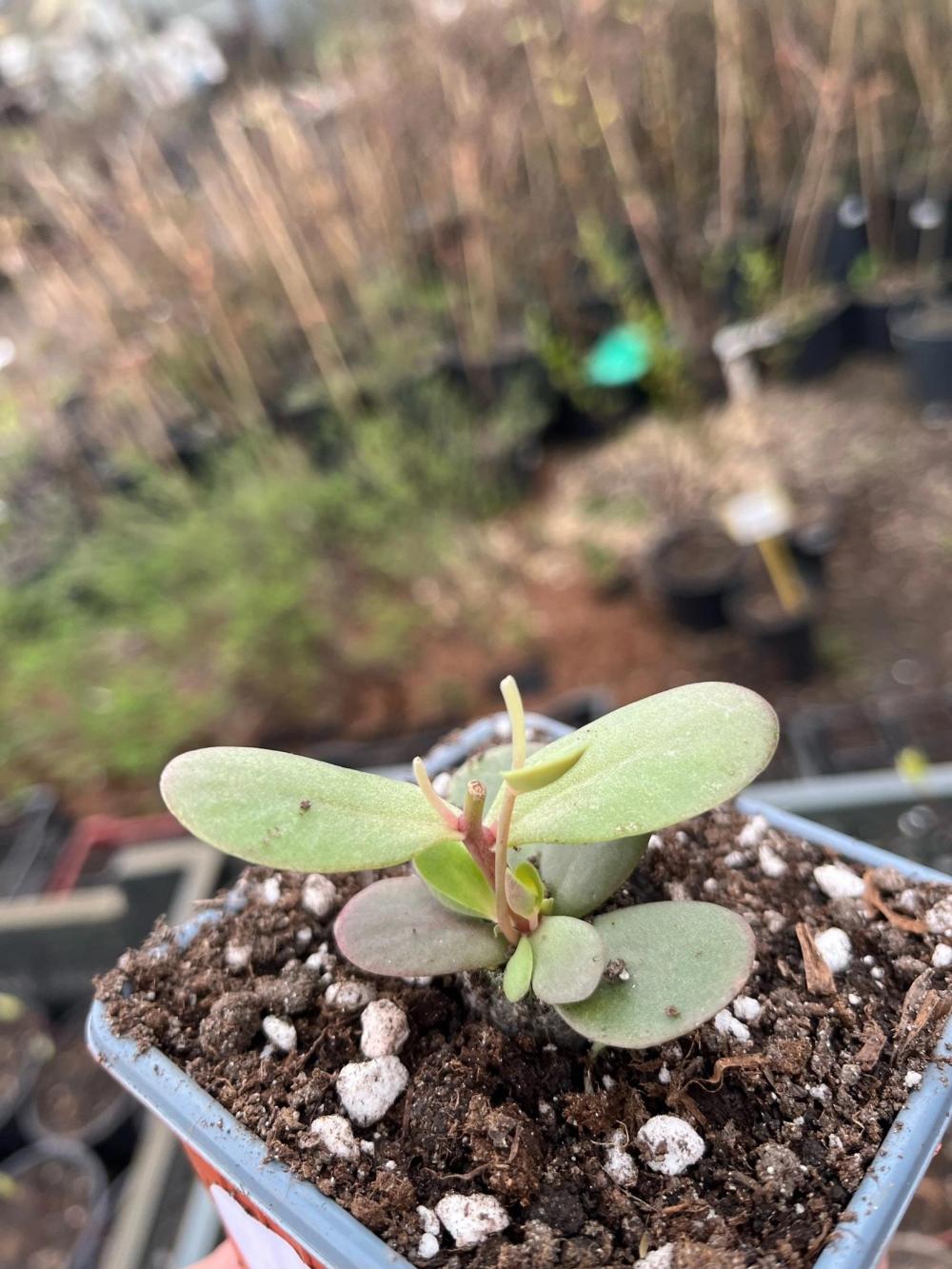 Листва: Мясистые, округлые, глянцевые листья, меняющие цвет с оливково-зеленого весной на насыщенный вишнево-красный летом.