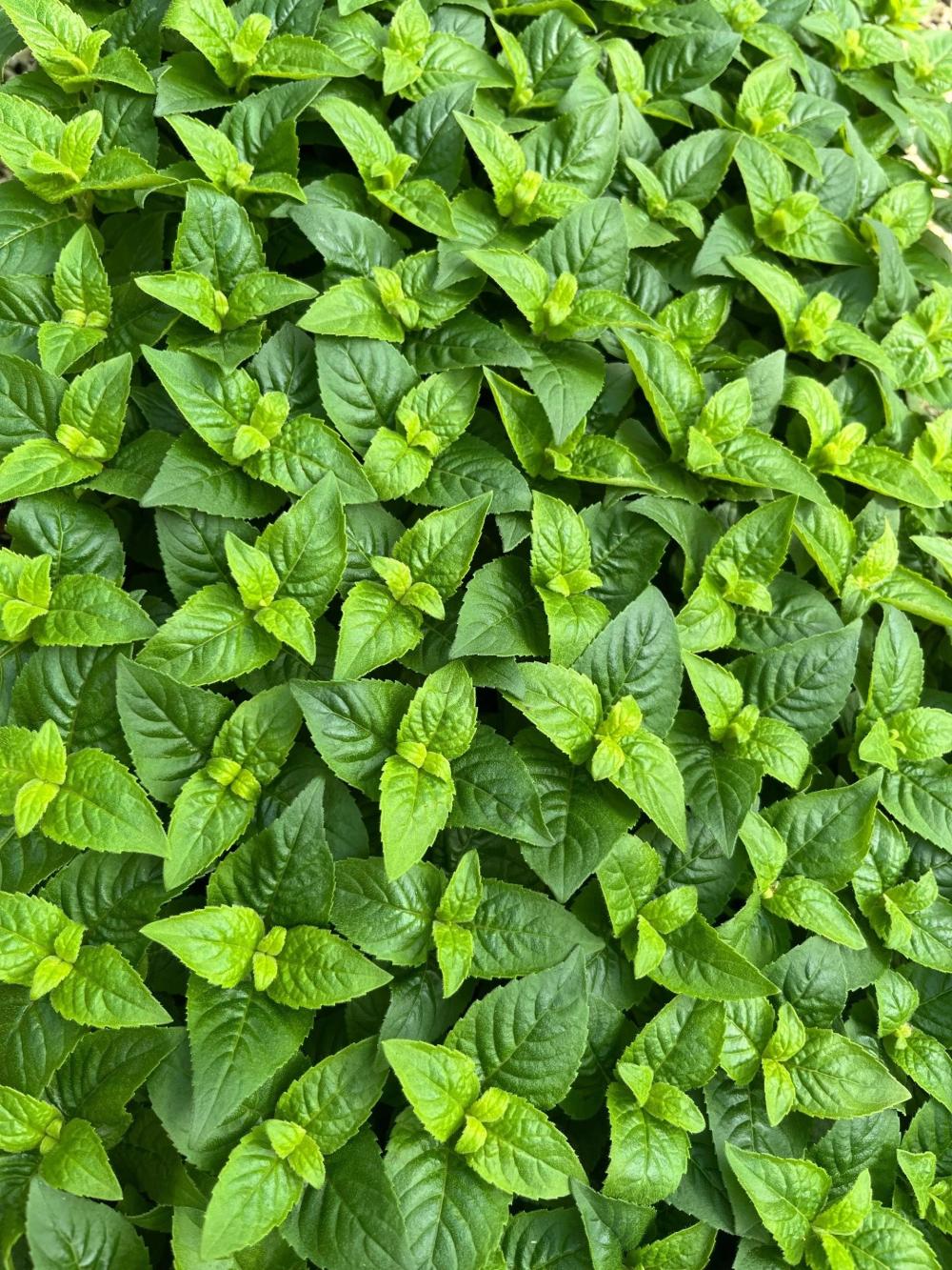 Листья: Темно-зеленые, ароматные, с сильным запахом мяты/цитруса, используются для чая.