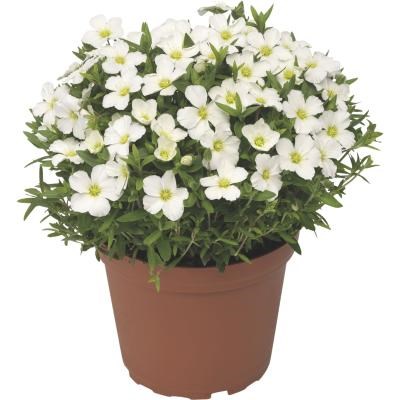 Песчанка горная 'Blizzard Compact' (Аренария горная) — это низкорослый вечнозеленый почвопокровник, образующий плотные, бархатистые подушки из мелких игольчатых листьев, которые летом полностью скрываются под обильным «снегом» из белых пятилепестковых цветков. Идеальна для альпинариев, рокариев, бордюров, благодаря компактному росту (до 10-15 см), неприхотливости, засухоустойчивости и высокой морозостойкости (зона 3).