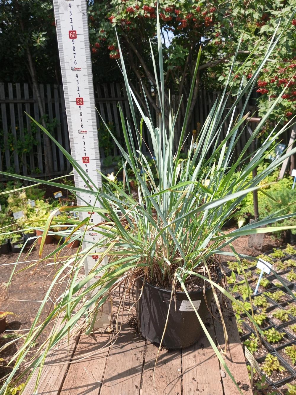 Колосняк песчаный голубой (Leymus arenarius) — эффектный многолетний злак с яркими сизо-голубыми, жесткими листьями, образующими пышные кусты высотой до 120 см, которые декоративны весь сезон. Растение неприхотливо, засухоустойчиво, любит солнце и легкие песчаные почвы, но из-за агрессивного разрастания корневища требует ограничения при посадке, например, с помощью контейнера, заглубленного в землю. Идеален для рокариев, миксбордеров и закрепления склонов, хорошо сочетается с растениями пурпурной листвы.