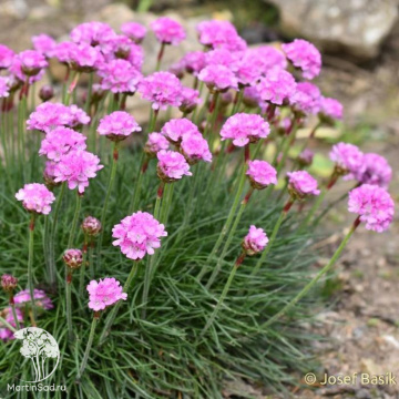 Армерия «Армада Роуз» (Armeria maritima 'Armada Rose') — это вечнозеленый подушковидный многолетник с узкой сине-зеленой листвой и яркими розовыми шаровидными соцветиями, цветущий с мая-июня около 70 дней. Растение светолюбивое, засухоустойчивое, предпочитает легкие, хорошо дренированные песчаные почвы без извести, зимостойкое, идеально для рокариев, бордюров и альпийских горок, сочетается с камнеломками, седум, флоксами.