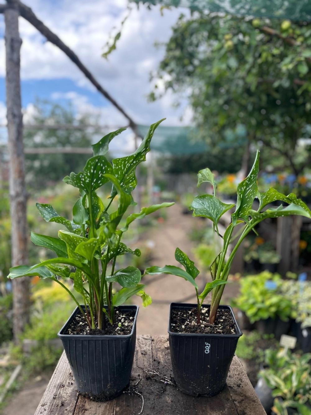 Листья: Широкие, глянцевые, темно-зеленого цвета. Характерная особенность сорта — наличие на листьях мелкого белого или серебристого крапа (пятнышек).