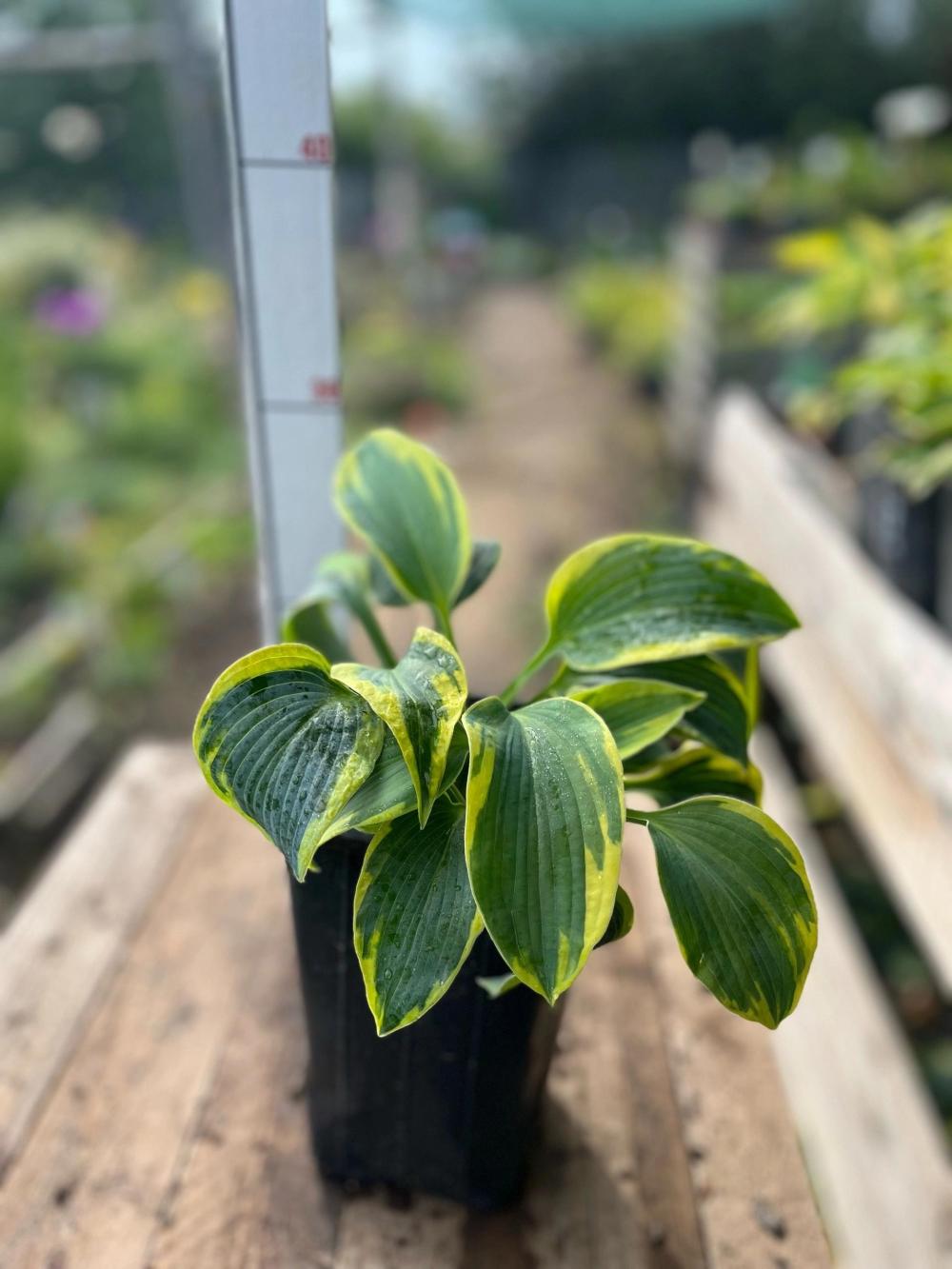 Хоста «Тути Мэй» (Hosta Tootie Mae) – это эффектный сорт с плотными, жатыми сине-зелеными листьями, имеющими очень широкий, яркий желтый край, создающий сильный контраст; она неприхотлива, морозоустойчива, идеально подходит для полутени или кружевной тени, образует куст высотой до 45 см и шириной до 1 м. Сорт ценится за декоративную листву, хорошо растет в прохладном климате, сочетается с папоротниками и астильбами, цветет белыми цветами в июне.