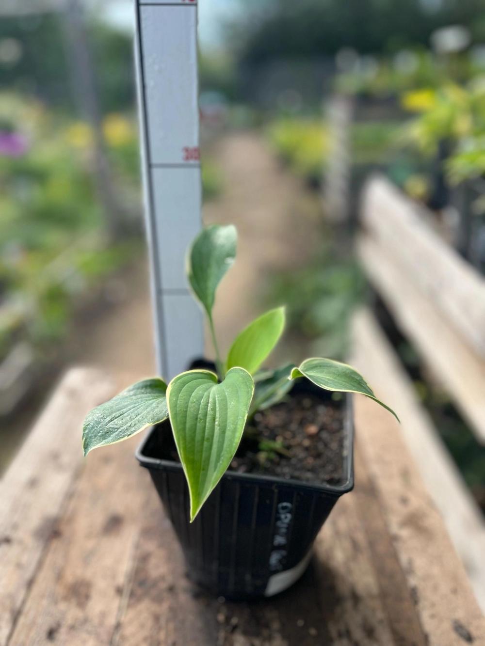 Хоста 'Orion's Belt' – популярный средне-крупный сорт с крупными сердцевидными листьями серо-сине-зеленого цвета и широкой кремово-белой каймой, которая светлеет к лету, образуя эффектные волнистые края; куст достигает 50-70 см в высоту и до 1 метра в ширину, цветет сиреневыми колокольчиками, любит полутень и влажную почву.