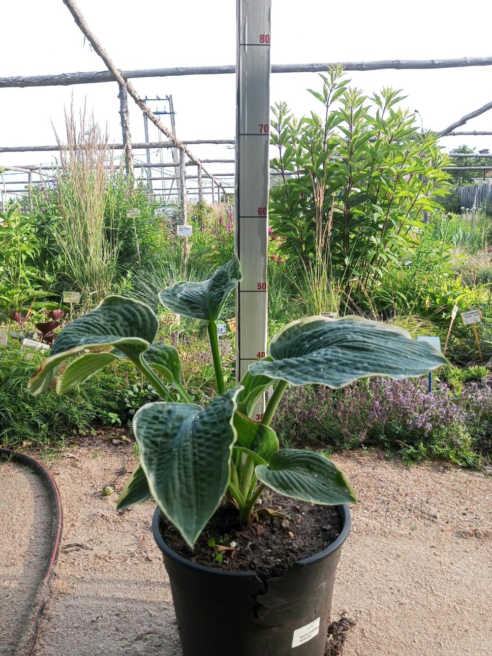 Листья: Крупные (до 36x25 см), плотные, округло-сердцевидные, с сине-зеленым центром и широкой кремово-желтой каймой.